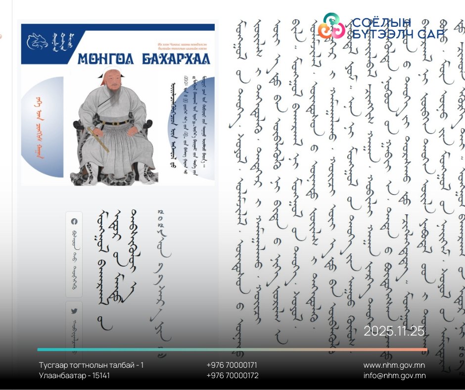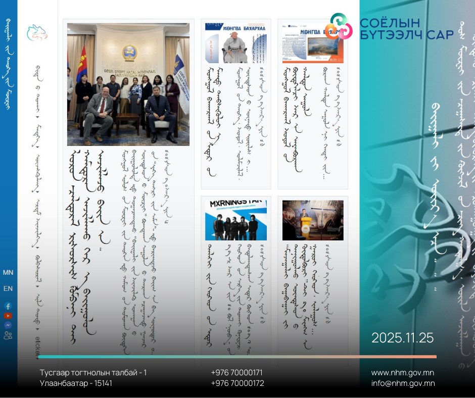 www.nhm.gov.mn вэб сайтад Үндэсний бичиг цэсийг хөгжүүлэн амжилттай нэвтрүүллээ. Модуль хөгжүүлэлт, сайжруулалтыг цаг үргэлж хийж байна.