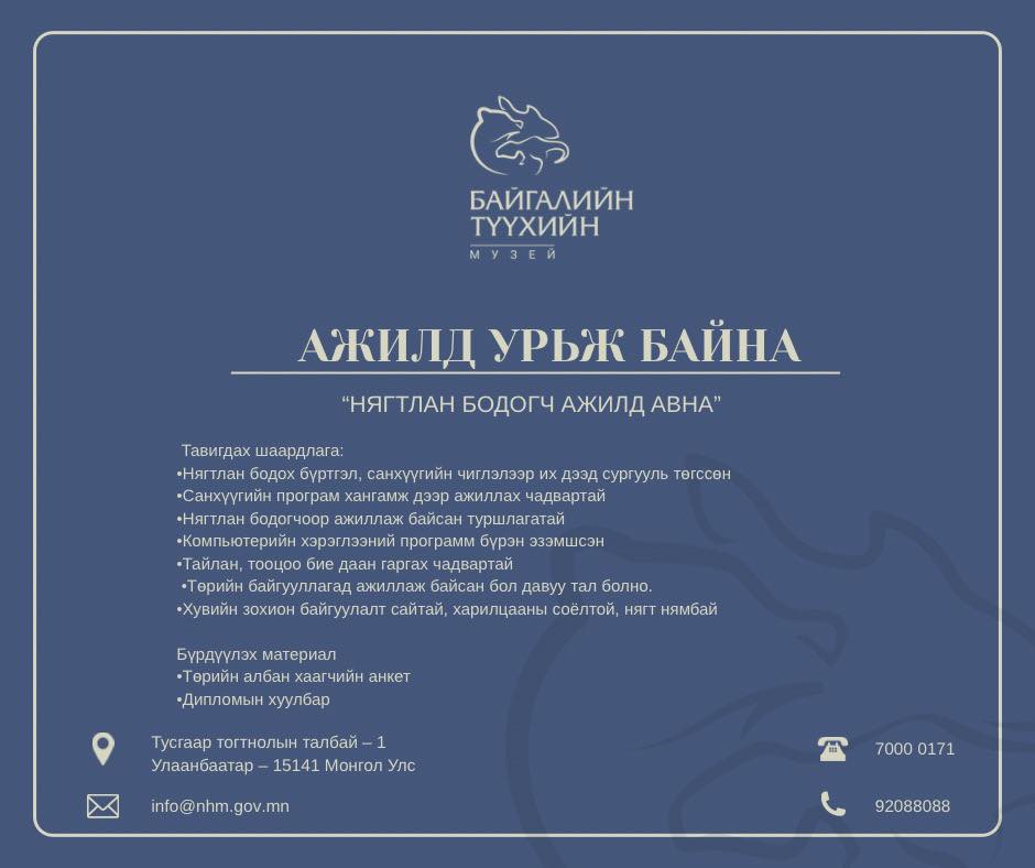 • ᠨᠢᠭᠲᠠᠯᠠᠨ ᠪᠣᠳᠤᠭᠴᠢ ᠪᠠᠷ ᠠᠵᠢᠯᠯᠠᠵᠤ ᠪᠠᠶᠢᠭᠰᠠᠨ ᠲᠤᠷᠰᠢᠯᠭᠠᠲᠠᠢ